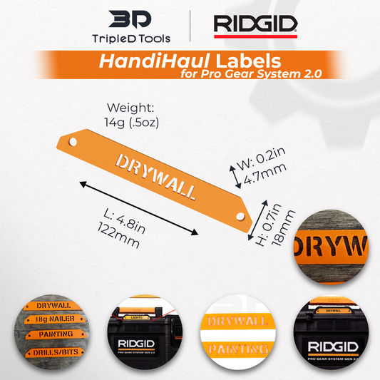 TripleD Tools HandiHaul Labels for Ridgid Pro Gear System 2.0 Made in America Durable Plastic Customizable Pack of 2