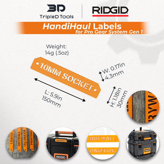 TripleD Tools HandiHaul Labels for Ridgid Pro Gear System Gen 1.0 Made in America Durable Plastic Customizable Pack of 2